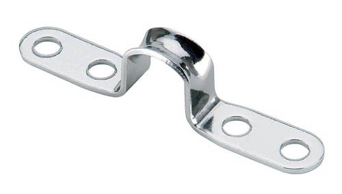 Harken bøjle i rustfri stål. Dobbelt hul Yderste hulafstand: 70 mm. Inderste hulafstand: 38 mm. Indvendig diameter: 16 mm. Bredde: 14 mm. Længde: 83 mm. Brudstyrke: 1.814 kg. Vægt pr. stk: 18 g