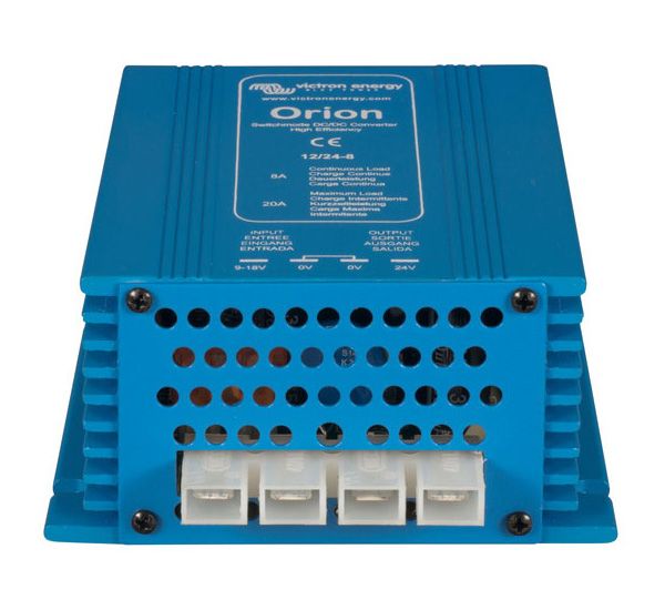 Der er mulighed for justering af udgangsspænding for vedligeholdelsesladning af et batteri med Orion IP20, ligesom der er mulighed for on/off kontakt på disse modeller.