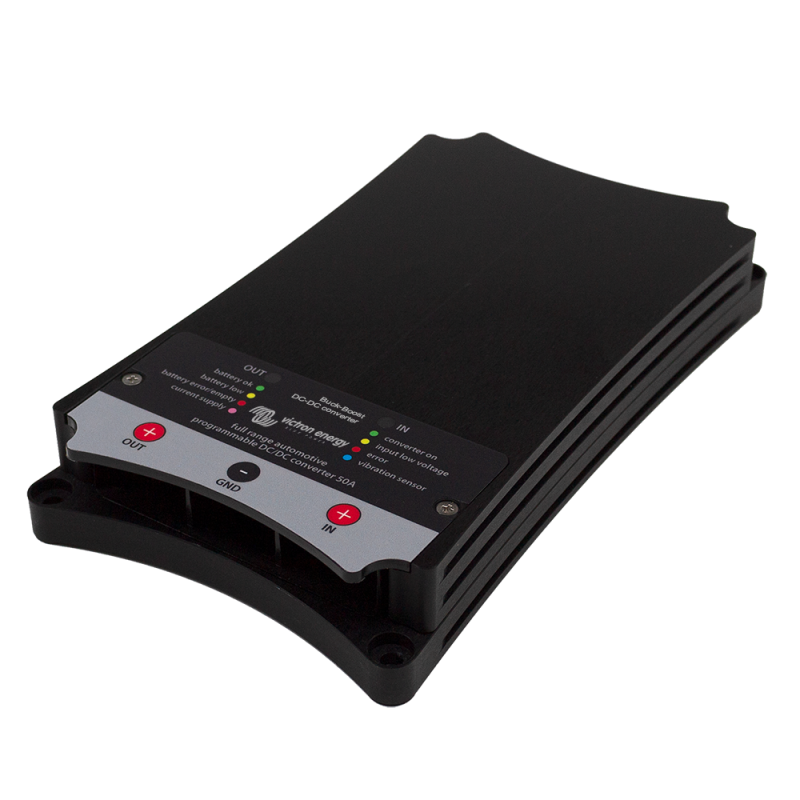 50A Buck - Boost DC-DC Converter er en DC-DC-konverter til opladning af et 12/24V forbrugs-/servicebatteri i et køretøj med en intelligent dynamo.Når motoren kører, leverer generatoren (styret af elektronikken i Euro 5 og 6 motorer) ikke altid den korrekte ladestrøm, hvorfor en Buck - Boost DC-DC-konverter nødvendig for korrekt opladning af forbrugs-/servicebatteriet.