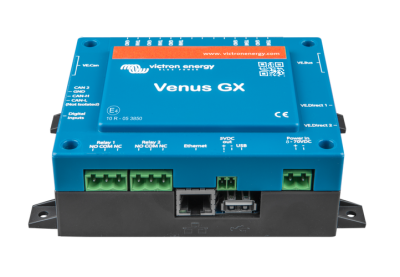 Venus GX er kommunikationscentret i din installation. Venus giver dig mulighed for at kommunikere med alle komponenter i dit system og sikre, at de arbejder i harmoni. Overvågning af livedata og ændring af indstillinger udføres ved brug af din smartphone (eller anden enhed) via den gratis Victron Remote Management Portal (VRM).