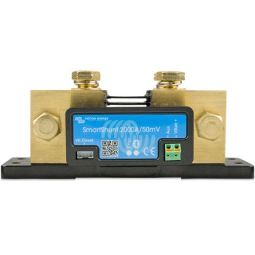 SmartShunt er en alt i ét batterimonitor, men uden en skærm. Din telefon fungerer som skærm. SmartShunt opretter forbindelse via Bluetooth til VictronConnect-appen på din telefon (eller tablet), og du kan let læse alle tilgængelige batteriparametre, som f.eks. kapacitet, spænding, strøm, historisk data og meget mere. Alternativt kan SmartShunt tilsluttes og læses af en GX-enhed. Forbindelse sker med et VE.Direct-kabel. SmartShunt er et godt alternativ til en BMV-batterimonitor, især i systemer, hvor der er behov for batteriovervågning uden for mange ledninger og skærme.SmartShunt er udstyret med Bluetooth, en VE.Direct port og en tilslutning der kan bruges til: spændingsovervågning af et andet batteri, midtpunktsovervågning eller en temperatur-sensor.SmartShunt er tilgængelig i 500 A. 1000 A og 2000 A udgaver. Forskelle i forhold til BMV-712 batterimonitorIngen programmerbare hørbare og visuelle alarmerIntet progammerbart relæ