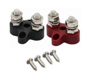 Dobbeltterminal M8Max. strøm: 150 AMax. spænding: 70 VDCTerminaldiameter: M8Terminalhøjde: 17 mm Terminalmaterial: Rustfrit stålMøtrik: Rustfrit stål Anbefalet tilspænding: 10 NmLaske: Fortinnet kobber (1.0 x 13 mm)Kabinet: Glasfiberforstærket nylonVægt: 70 gDimensioner (hxbxd): 45 x 43 x 32 mm