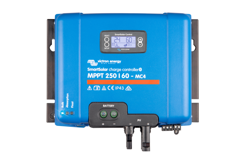 Batterispænding: 12/24/36/48VDC (Automatisk, 36V via software)Nominel strøm: 60ANominel PV effekt, 12VDC: 860WNominel PV effekt, 24VDC: 1720WNominel PV effekt, 48VDC: 3440WMaks. PV kortslutningsstrøm: 35A, maks. 30A pr. MC4 stikMaks. PV spænding, "Open Circuit": 250VDCDimensioner: 200x250x95mm, HxBxD Link til MPPT BeregnerLink til VictronConnect App