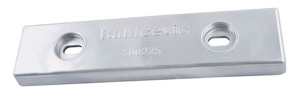 Udvendige mål: L325 * B80 * H30 mm Hulafstand: 180 mm Hul: 13 * 25 mm Vægt: 4,700 kg. Rakicevic Nautical Anodes produceres i Europa med brug af de bedste og reneste råmaterialer, der alle opfylder MIL-A-18001K standarden og indeholder zink med renhed på mindst 99,55%