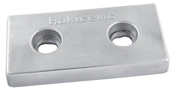 Udvendige mål: L210 * B100 * H30 mm Hulafstand: 100 mm Hul: 18 mm Vægt: 4,000 kg. Rakicevic Nautical Anodes produceres i Europa med brug af de bedste og reneste råmaterialer, der alle opfylder MIL-A-18001K standarden og indeholder zink med renhed på mindst 99,55%