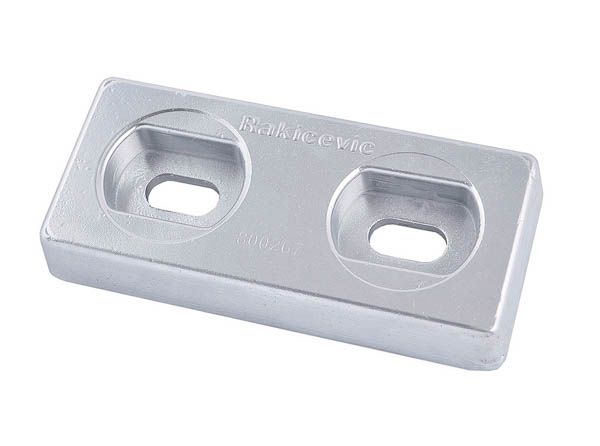 Udvendige mål: L151 * B69 * H25 mm Hulafstand: 75 mm Hul: 13 * 25 mm Vægt: 1,500 kg. Rakicevic Nautical Anodes produceres i Europa med brug af de bedste og reneste råmaterialer, der alle opfylder MIL-A-18001K standarden og indeholder zink med renhed på mindst 99,55%