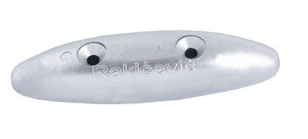 Udvendige mål: L145 * B40 * H22 mm Hulafstand: 52 mm Hul: 6,5 mm Vægt: 0,478 kg. Rakicevic Nautical Anodes produceres i Europa med brug af de bedste og reneste råmaterialer, der alle opfylder MIL-A-18001K standarden og indeholder zink med renhed på mindst 99,55%