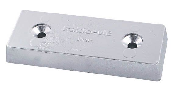 Udvendige mål: L130 * B50 * H17 mm Hulafstand: 77 mm Hul: 7 mm Vægt: 0,663 kg. Rakicevic Nautical Anodes produceres i Europa med brug af de bedste og reneste råmaterialer, der alle opfylder MIL-A-18001K standarden og indeholder zink med renhed på mindst 99,55%