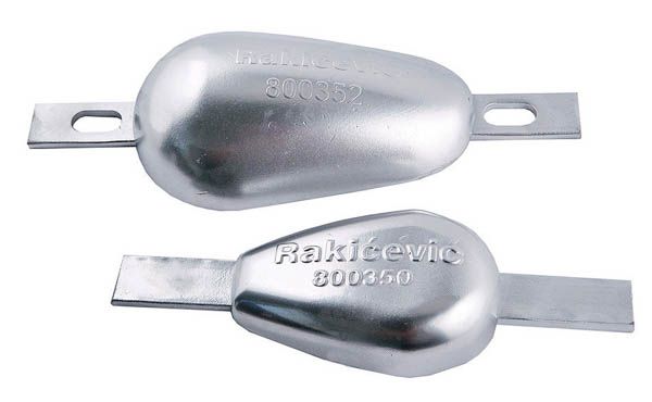 Længde total: 250 mm Længde zink: 140 mm Bredde: 90 mm Højde: 35 mm Hulafstand: 200 mm Vægt: 1,800 kg. Rakicevic Nautical Anodes produceres i Europa med brug af de bedste og reneste råmaterialer, der alle opfylder MIL-A-18001K standarden og indeholder zink med renhed på mindst 99,55%