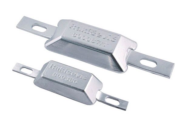 Længde total: 165 mm Længde zink: 95 mm Bredde: 34 mm Højde: 17 mm Hulafstand: 117 mm Hul: 7 * 25 mm Vægt: 0,260 kg. Rakicevic Nautical Anodes produceres i Europa med brug af de bedste og reneste råmaterialer, der alle opfylder MIL-A-18001K standarden og indeholder zink med renhed på mindst 99,55%