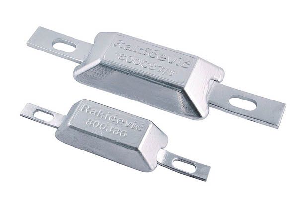 Længde total: 250 mm Længde zink: 141 mm Bredde: 66 mm Højde: 25 mm Hulafstand: 180 mm Hul: 13 * 25 mm Vægt: 1,110 kg. Rakicevic Nautical Anodes produceres i Europa med brug af de bedste og reneste råmaterialer, der alle opfylder MIL-A-18001K standarden og indeholder zink med renhed på mindst 99,55%