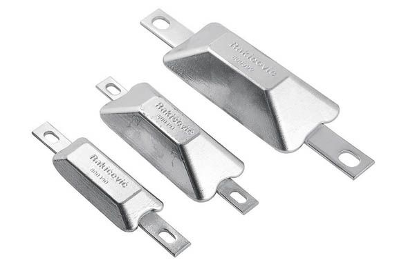 Længde total: 210 mm Længde zink: 130 mm Bredde: 60 mm Højde: 30 mm Hulafstand: 184 mm Hul: 13 * 10 mm Vægt: 1,000 kg. Rakicevic Nautical Anodes produceres i Europa med brug af de bedste og reneste råmaterialer, der alle opfylder MIL-A-18001K standarden og indeholder zink med renhed på mindst 99,55%