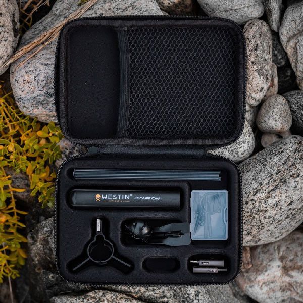 Westin Escape Cam er verdens mindste og letteste undervands fiskekamera! Optag fantastiske videoer af dine undervandseventyr, og del dem ubesværet. Vejer kun 40 g. Den er super stødsikker, og vandtæt ned til 200 meter. Med de medfølgende tilføjelser kan du tilpasse kameraet til forskellige agn og fisketeknikker. På trods af sin størrelse leverer fiskekameraet videoer i høj kvalitet med op til 60 fps, takket være Auto White under vand.