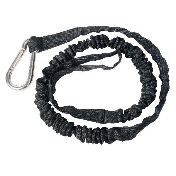 Færdig fortøjningsline med syet løkke i den ene ende og en syrefast karabinhage i den anden ende samt elastisk dæmpning. DockMate har en elastisk kerne med et robust, UV-bestandigt nylonbetræk.