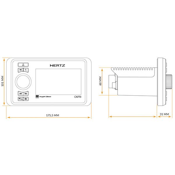 Hertz Capri er en high-end marineradio, der kombinerer elegance og avanceret lydteknologi. Med IP67-beskyttelse er den designet til at modstå barske marine miljøer, herunder UV-stråling og saltvand.