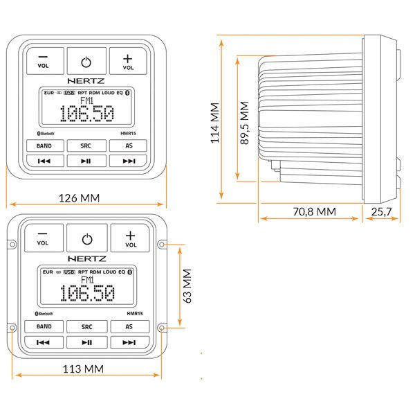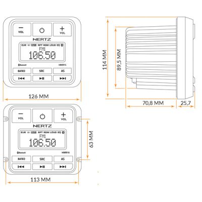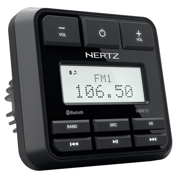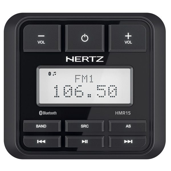 Hertz Marine HMR 15 er en stilfuld og brugervenlig marine radio med fysiske knapper, der gør den nem at betjene under sejlads.