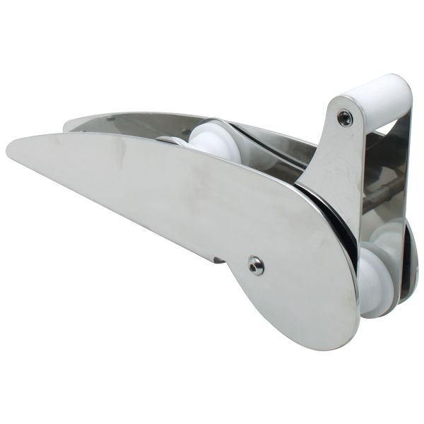 Rustfri stål ankerrulle med vippe funktion som kan anvendes til ankere på max 15 kg.