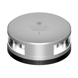 Toplys/Motorlanterne m. 225? hvidt lys. Til horisontal montage. Farve: Sølv. Lys: Hvidt Har en rækkevidde på 3 nm (3 sømil) Passer til både på 12-20m. Til 12/24V. Kabel på 0,7m medfølger. Certificeret og overholder alle standarder. 100% vandtæt (IP68) aluminiumshus. 5 års garanti. Mål: Ø92,5mm x 36mm Vægt: 0.48 Kg