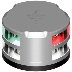 Tri-color lanterne med ankerlys, og kan også lyse med blink / strobeeffekt. Til horisontal montage. Farve: Sølv. Lys: Grøn / rød / hvid Rød og grøn lyser i vinkler på 112,5?, hvid lyser i 135? Har en rækkevidde på 2 nm (2 sømil) Passer til både på 12-20m. Til 12/24V. Kabel på 0,7m medfølger. Certificeret og overholder alle standarder. 100% vandtæt (IP68) aluminiumshus. 5 års garanti. Mål: Ø92,5mm x 68mm Vægt: 0.81 Kg