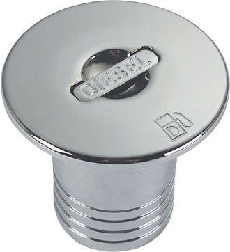 Dækspåfyldning til fuel med 38mm studs. Dækspåfyldningen er i Forkromet messing med vandafvisende låg og finger tap til åbning uden brug af værktøj.
