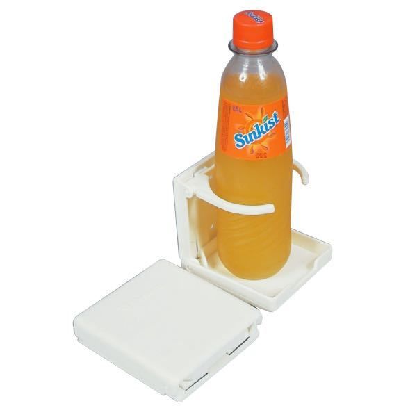 Sammenklappelig Flaskeholder til flasker og kopper. Flaskeholderen monteres nemt i båden eller bilen og er i hvid plast.