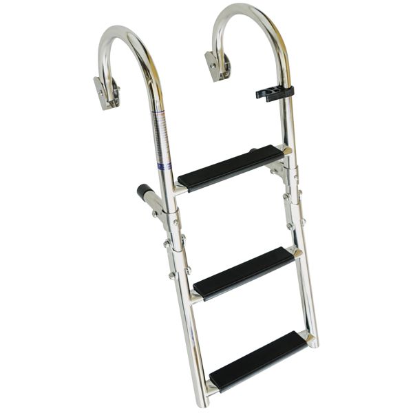 Badestiger i poleret rustfrit stål.Monteringsbeslagene er hængslede, så de passer til vinklen på båden.