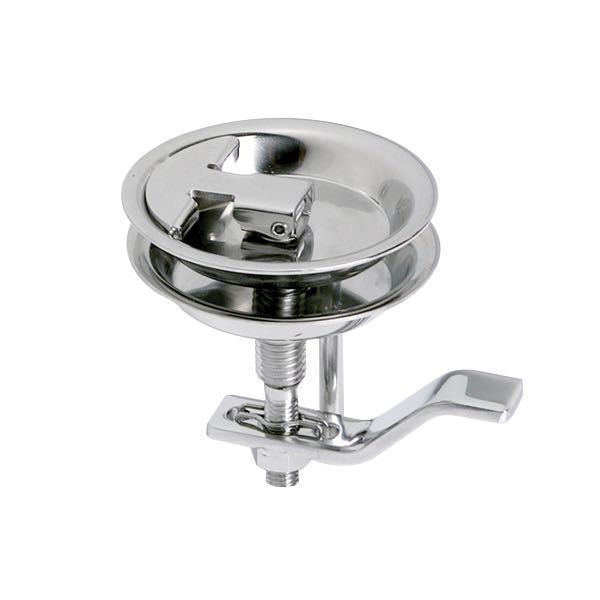 Fjederbelastet dørkbeslag af højglans poleret 316 rustfrit stål med stop og lås ved at vippe håndtaget. Ingen vibrationer; inklusiv lige ogbuet rigel.