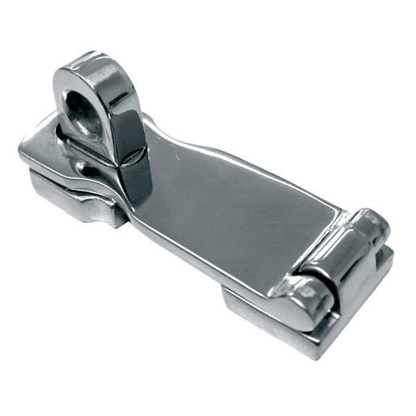 Låseoverfald i støbt rustfrit stål med svivl. Låseoverfaldet giver dig mulighed for at låse med hængelås.
