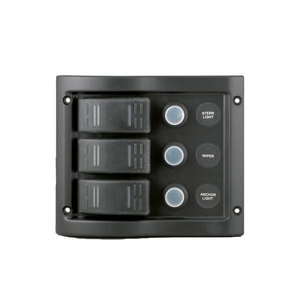 El-panel stænktæt med automatsikring og 3 kontakter, 12V