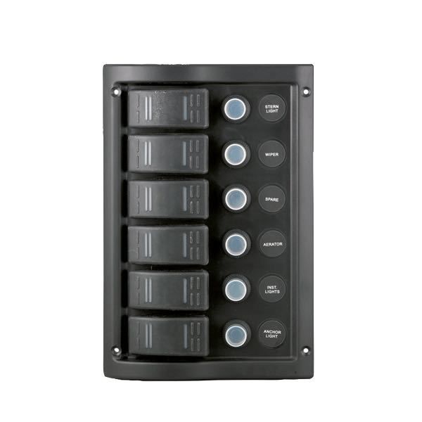 El-panel stænktæt med automatsikring og 6 kontakter, 12V