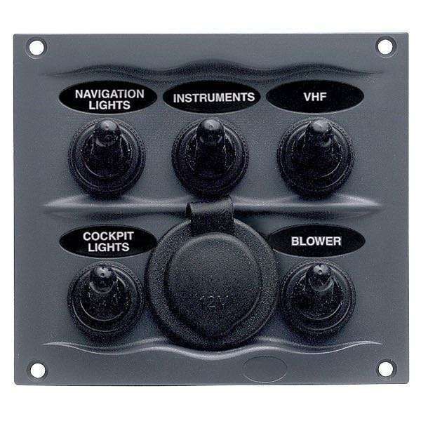 BEP Stænktæt el-panel med 5 kontakter og el-udtag, 12V