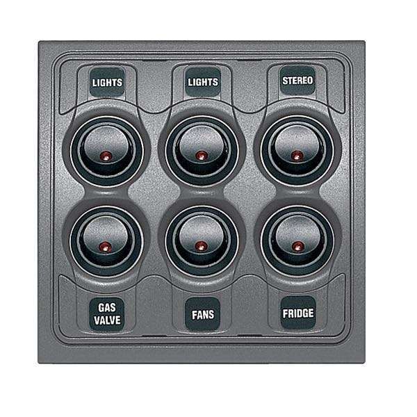 Kvalitets afbryderpanel fra BEP med 6 kontakter og 6 ATC sikringer.Leveres med symbol ark.