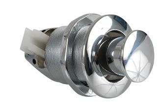 Forkromet skabslås til skabe eller døre i både. Meget populær løsning til bla. Pantryskabe. Låser når man trykker den forkromede knap ind.