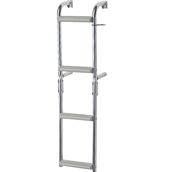 Badestiger er udført i poleret AISI 316 rustfrit stål med vippebeslag i top og justerbar fod. Trin af polypropylen. Desuden hængslet så stigen kan foldes sammen på midten.