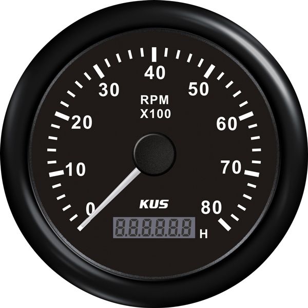 KUS omdrejningstæller m/timetæller til benzin sort, 0-8000