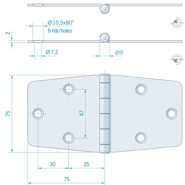 Roca hængsel 75x150mm AISI304