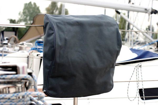 Rygpude til montering på søgelænder. Mål: 44 x 42 x 10,5 cm. Polstret pude med tykt skum og vandafvisende Ripstop materiale. Fastgøres til søgelænderet med fire burrebåndsstropper.