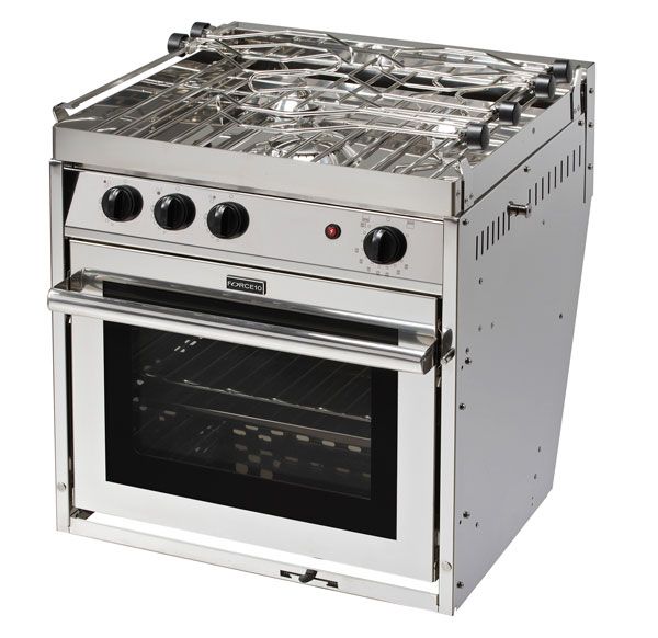 De kendte Force 10 komfurer produceres nu på ENO?s fabrik. Lækkert 3-blus komfur i rustfrit stål med 17L ovn med grillfunktion. Inkl. elektrisk tænding. Smart ovnlåge, der glider ind under ovnrummet når man åbner den. Mål: B: 508 mm D: 508 mm (excl. gastilkobling) H: 483 mm Vægt: 34 kg Find øvrige specifikationer og mål her: http://www.force10.com/gas_gimballed_3burner.html OBS: Force 10-komfuret med 3 blus findes i 5 varianter. Denne er varianten Euro Compact.