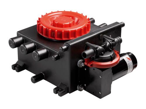 Spildevands-/opsamlingstank for afløbssvand fra bad og Pantry m.m. Tanken har 19, 25 og 38 mm indgang samt 19 og 25 mm udgang. Tanken er udrustet med en Ultima Switch niveaukontakt for automatisk tømning. Tanken er let at tilslutte til en 12 V eller 24 V pumpe med maks. forbrug på 20 A, og er forberedt med forborede huller for Viking Power 16 pumpen. Leveres uden pumpe