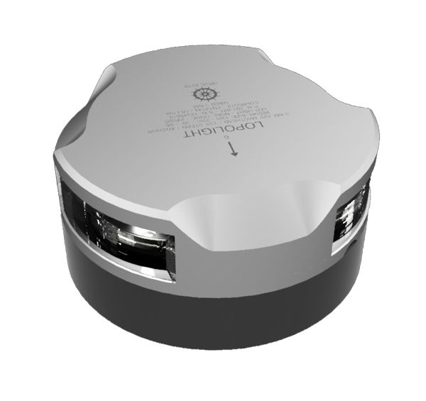 Kombineret toplys/motor- og ankerlanterne. Med hhv. 225? og 360? lys. Til motorbåd. Farve: Sølv. Lys: Hvidt. Til horisontal montage. Har en rækkevidde på 3 nm (3 sømil) Passer til både på 12-20m. Til 12/24V. Kabel på 0,7m medfølger. Certificeret og overholder alle standarder. 100% vandtæt (IP68) aluminiumshus. 5 års garanti. Mål: Ø92,5mm x 46mm Vægt: 0.54 Kg