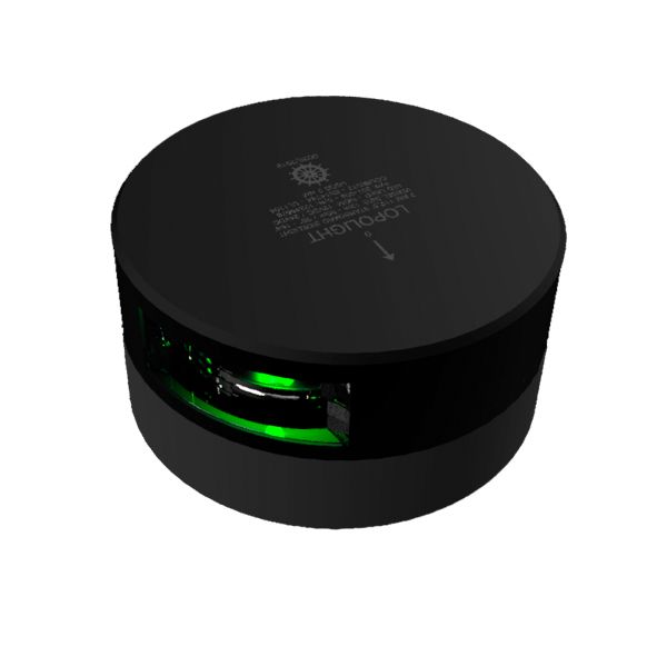 Styrbord sidelanterne til horisontal montage. Farve: Sort. Lys: Grøn Lyser i en vinkel på 112,5? med en rækkevidde på 2 nm (2 sømil) Passer til både på 0-50m. Til 12/24V. Kabel på 2,5m medfølger. Certificeret og overholder alle standarder. 100% vandtæt (IP68) aluminiumshus. 5 års garanti. Mål: Ø92,5mm x 46mm Vægt: 0.64 Kg
