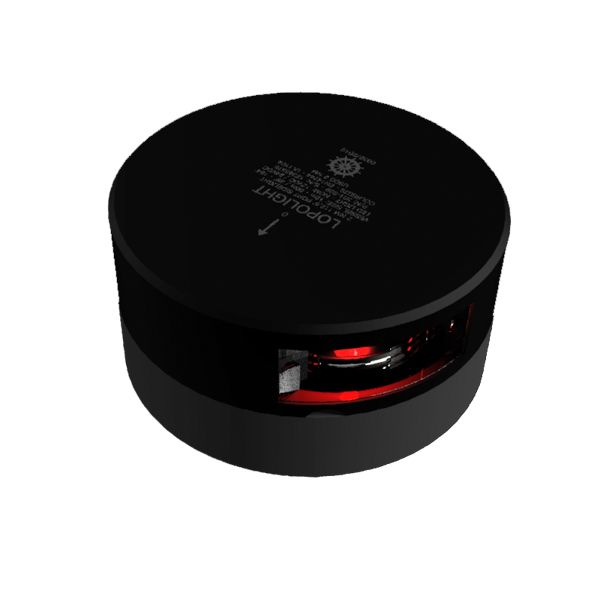 Bagbord sidelanterne til horisontal montage. Farve: Sort. Lys: Rødt Lyser i en vinkel på 112,5? med en rækkevidde på 2 nm (2 sømil) Passer til både på 0-50m. Til 12/24V. Kabel på 2,5m medfølger. Certificeret og overholder alle standarder. 100% vandtæt (IP68) aluminiumshus. 5 års garanti. Mål: Ø92,5mm x 46mm Vægt: 0.64 Kg