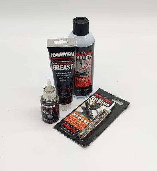 Det ultimative smørekit! Alt du behøver for at få det hele til at glide lettere. Komplet smørekit til vedligeholdelse af skødespil og andre bevægelige dele. Sættet består af: McLube Sailkote, McLube OneDrop, Harken Spilfedt og Palolie. McLube Sailkote er en enestående hightech tørfilm, et smøremiddel, der får sejl, hulkehl, rig og dæksudstyr - ja, alt hvad der bevæger sig - til at glide meget lettere og være optimalt beskyttet. Behandlingen holder overraskende længe (ca. 10 gange længere end Teflon?). Sailkote er den eneste tørfilm, der er udviklet specielt til maritime formål. Kan også bruges som beskyttelse mod begroning på propeller (brug 3 lag for optimal effekt). OneDrop: Med en enkel dråbe af dette unikke olieprodukt, opløses salt, snavs og andre aflejringer i kuglelejer, gevind, vantskruer osv. Samtidig smøres emnet og overfladen stabiliseres og beskyttes. Der opnås en nedsat friktion, så dine kuglelejer ruller lettere, og kan yde den bedste performance. Harken spilfedt er et langtidsvirkende syntetisk smøremiddel til spil m.m. Modstandsdygtig over for fersk- og saltvand. Beskytter mod korrosion og slitage. Palolie: Specialolie med god vedhæftning.