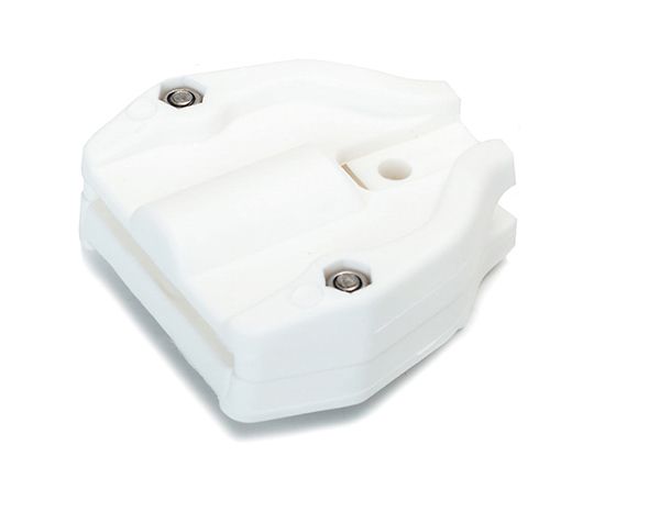 Rutgerson 1490-1 Sejlpindsbeslag Afklippet 84 x 63 mm Max. bredde: 45 mm Max. Ø: 12 Vægt: 45 g Slæde-fitting: 1530-xx-03, 1531-xx-03, 1530-xx-15 Farve: Hvid