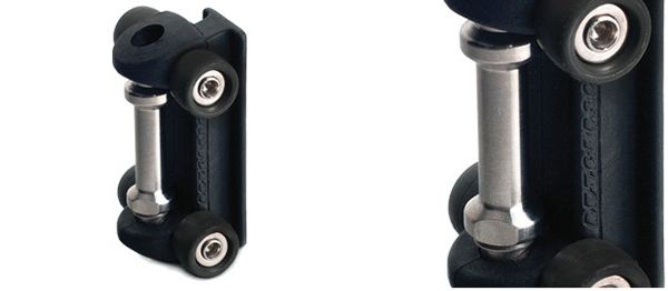 Rutgerson Slæde 23 mm Længde: 66 mm Hjul-Ø: 15,5 mm Fitting: Webbing Materiale: Rustfrit stål