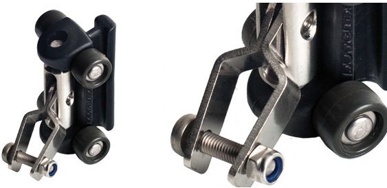 Rutgerson Slæde Med gaffel og store hjul. Uden svirvel. 11 mm Længde: 66 mm Hjul-Ø: 19,5 mm Fitting: 1490-1 og 1490-1B Materiale: Rustfrit stål