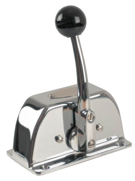 SeaStar topmonteret boks med en funktion til enten gear eller gas. Forsynet med friktionsbremse. Hus og håndtag i forkromet messing. Anvend 1 stk. SeaStar CC330 / CCX633 kabel SeaStar part nr. CH5210P Boksen leveres uden kabler.