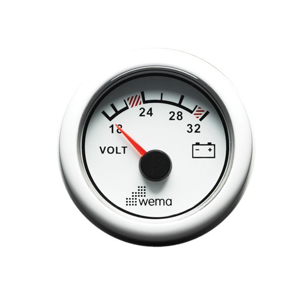 Whiteline instrument med høj nøjagtighed og valgfri rød / gul LED baggrundsbelysning. Vandtæt IP56, modstandsdygtig overfor UV og saltvand Udskæring: 52 mm, Yderdia. 62 mm, Dybde 60 mm.