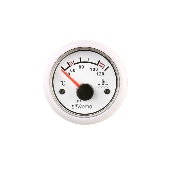 Whiteline instrument med høj nøjagtighed og valgfri rød / gul LED baggrundsbelysning. Vandtæt IP56, modstandsdygtig overfor UV og saltvand Udskæring: 52 mm, Yderdia. 62 mm, Dybde 60 mm.