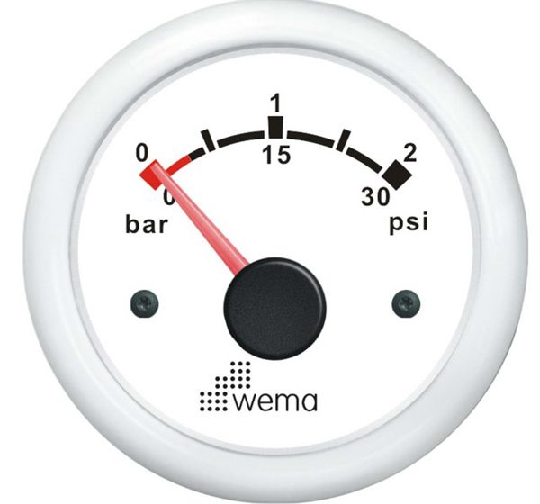 Whiteline instrument med høj nøjagtighed og valgfri rød / gul LED baggrundsbelysning. Vandtæt IP56, modstandsdygtig overfor UV og saltvand Udskæring: 52 mm, Yderdia. 62 mm, Dybde 60 mm.